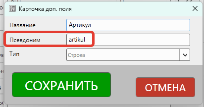 Псевдонимы для дополнительных полей