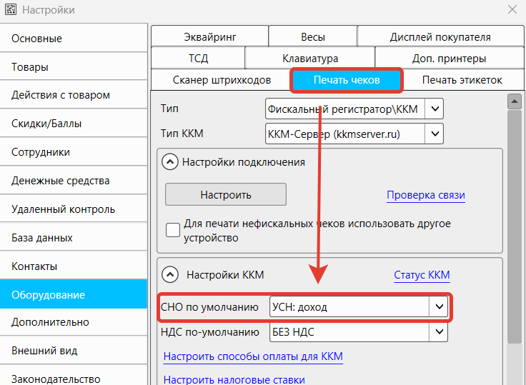 - Перейдите на вкладку «Печать чеков»